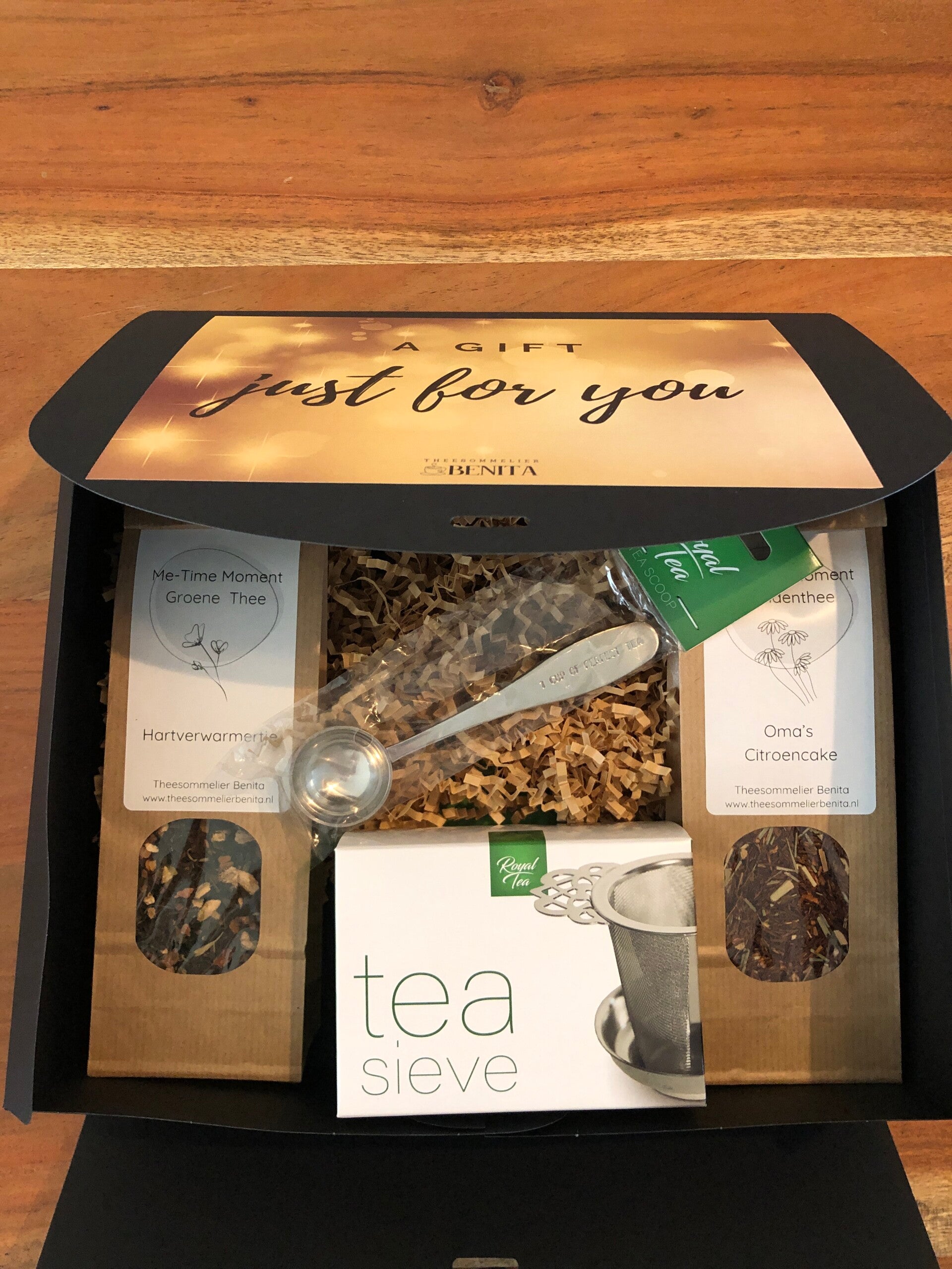 Daarbij bevat de box luxe tools die jouw theemoment nóg fijner maken:
