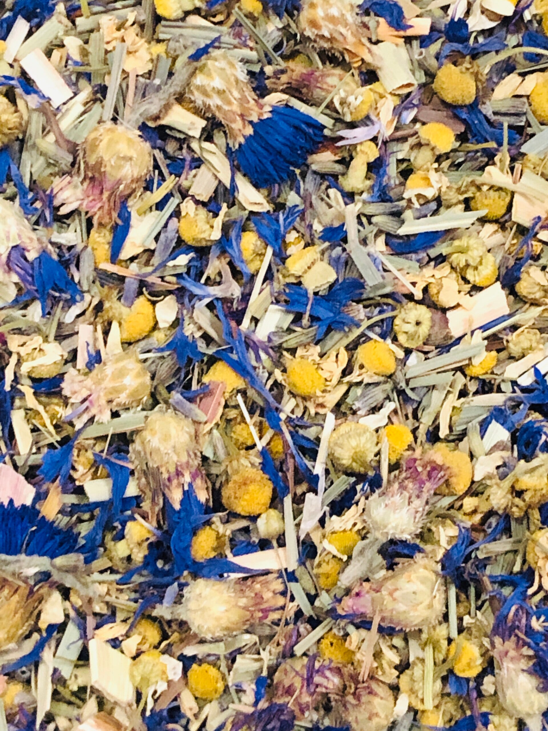 De kalmerende kracht van kamille brengt je lichaam tot stilte, terwijl citroengras je geest verfrist en ruimte maakt voor nieuwe dromen. Korenbloem zorgt voor zachtheid en balans, en de subtiele geur van lavendel fluistert je langzaam richting diepe, natuurlijke ontspanning.